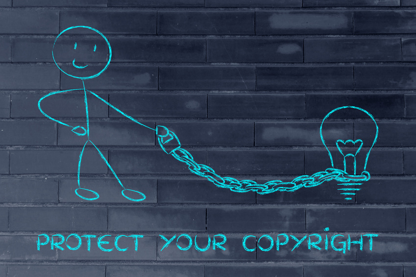 funny copyright owner man with his idea on a chained leash: prot ...