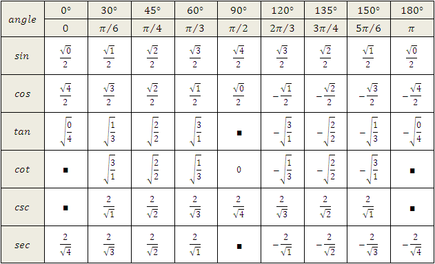 Table Trigonometric Trig